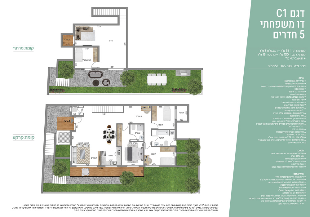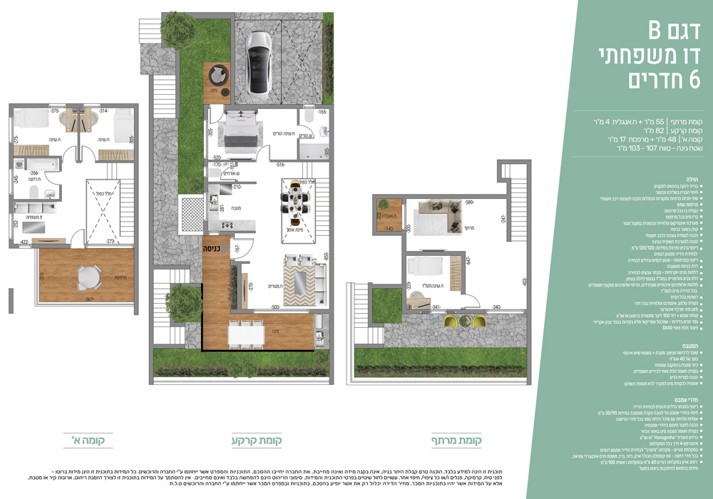 בפרויקט דירות בנות 5 ו-6 חדרים וחלקן כוללות יחידת דיור למגוון שימושים, המעניקות אפיק של נדל”ן מניב לרוכשים בפרויקט.